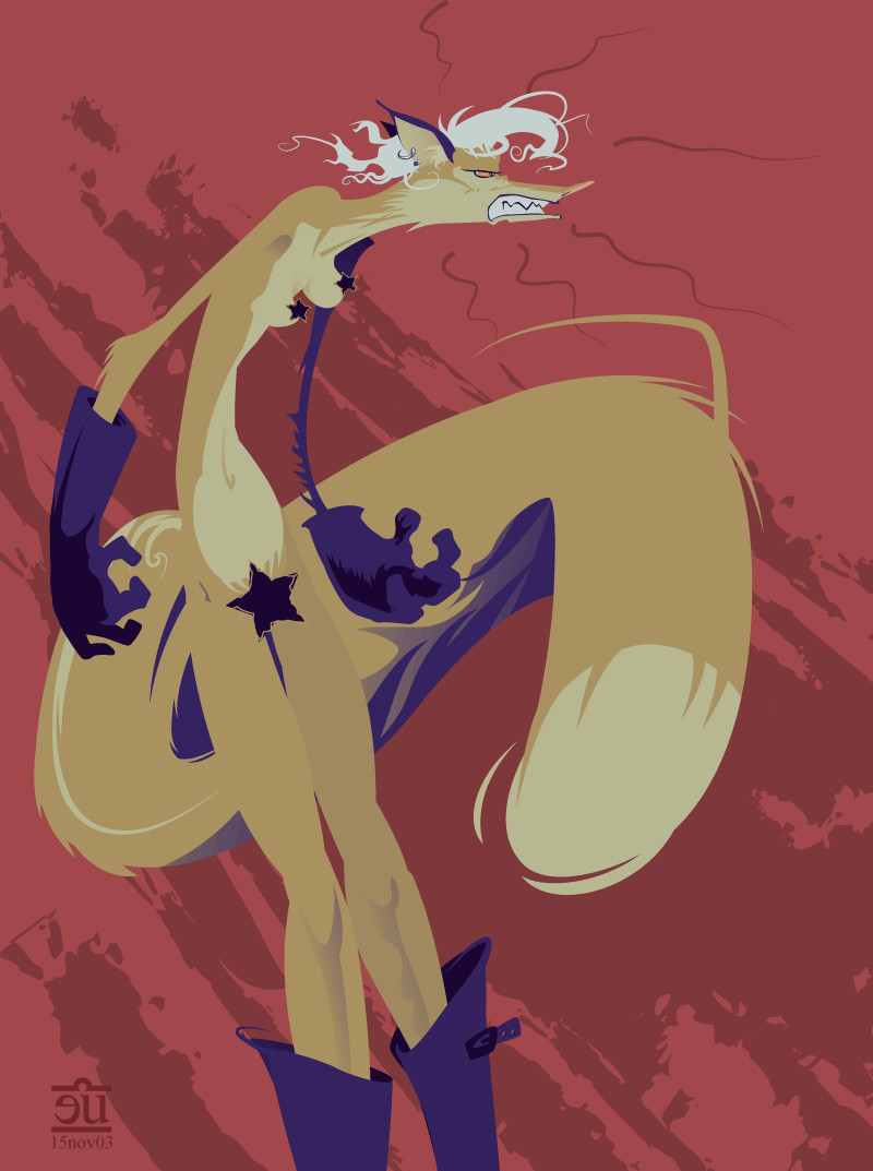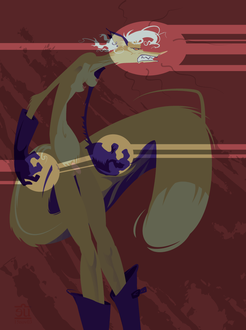 I chose to work more off of the text rendition of the character than the visual ones; this let me look past the usually huge breasts and mammaries and emphasize the serpentine nature and the attitude instead of the sexual elements. Aside from possible comedically asexual images, these are probably the smallest tits anyone has ever drawn on this character.